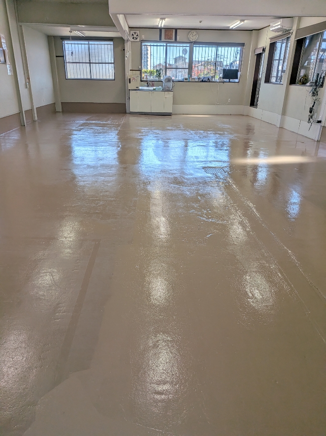 先日 経営者の団体で(愛知中小企業家同友会)お世話になっている株式会社グローアップさんの床の塗装を行いました。